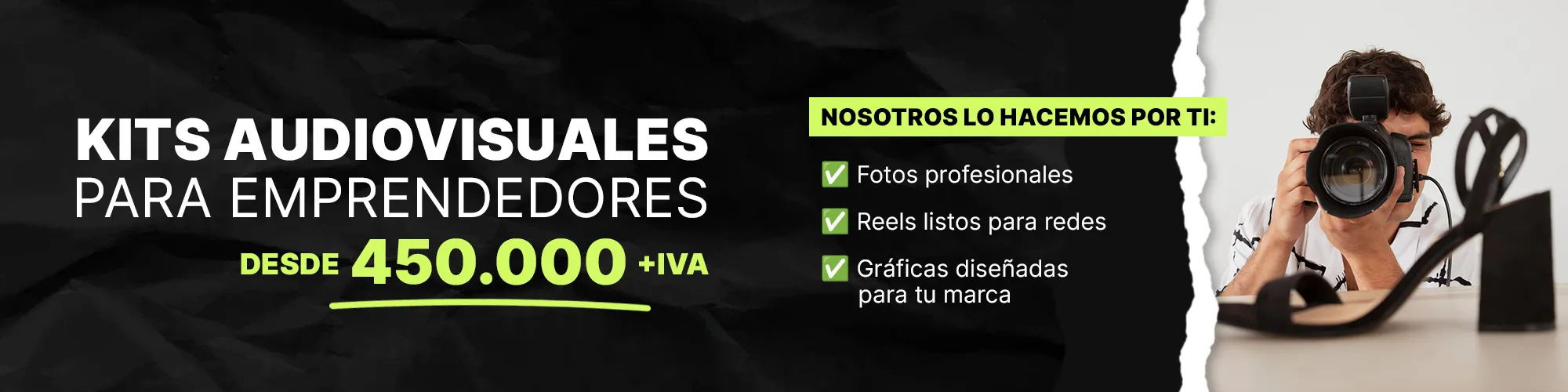 Desde fotografía profesional para redes sociales como Instagram y LinkedIn, hasta videos de alta calidad para Reels, YouTube y tu sitio web.